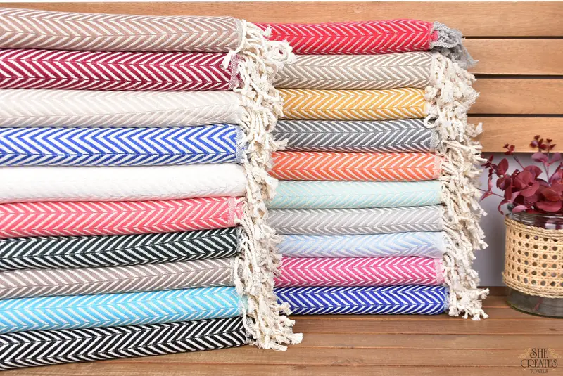 Zig zag Pamuk Havlu Bej, 40x70 İnç, El Yapımı Düğün Hediyesi