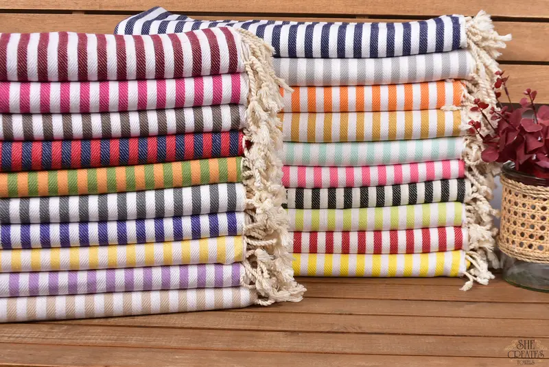Pamuk Çizgili Havlu Bej Art Deco, Düğün Hediyesi, 70x40 İnç