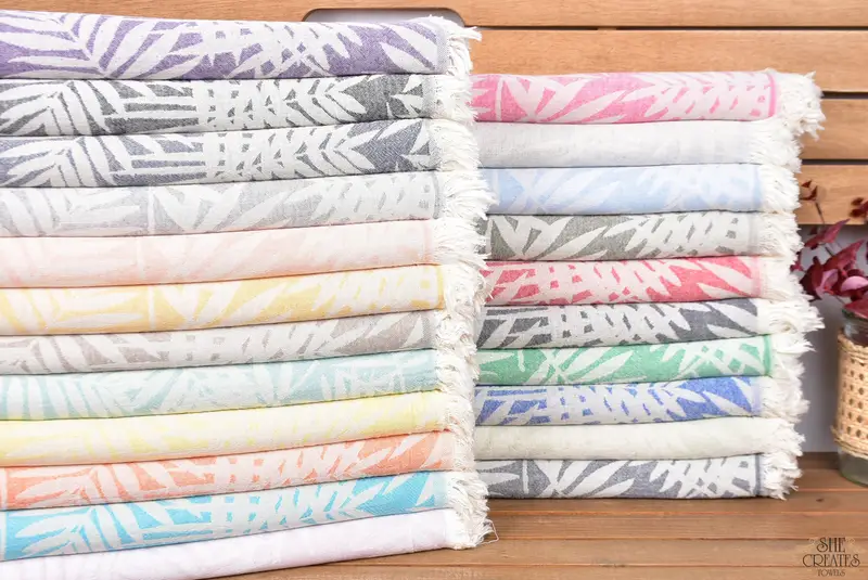 Pamuk Çiçek Desenli Havlu, Türk Plaj Havlusu, 40x63 İnç