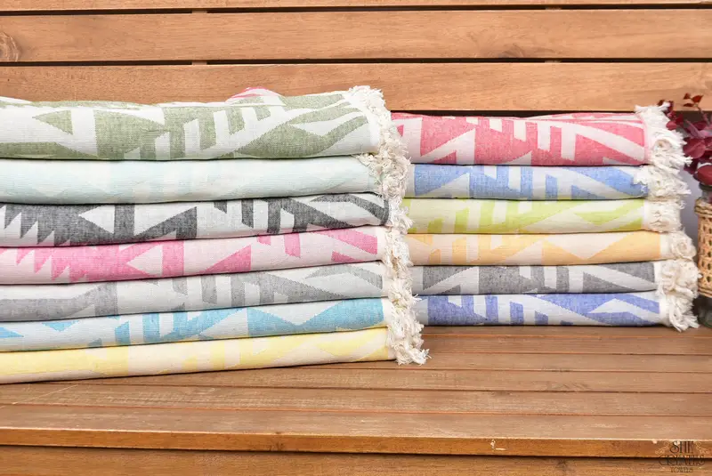 Pamuk Geometrik Havlu Kişiye Özel Düğün Hediyesi Bej, 40x75 İnç