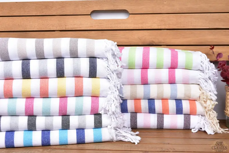 Kişiye Özel Hediye, 40x71 İnç Pamuk Çizgili Havlu, El Yapımı, Bej