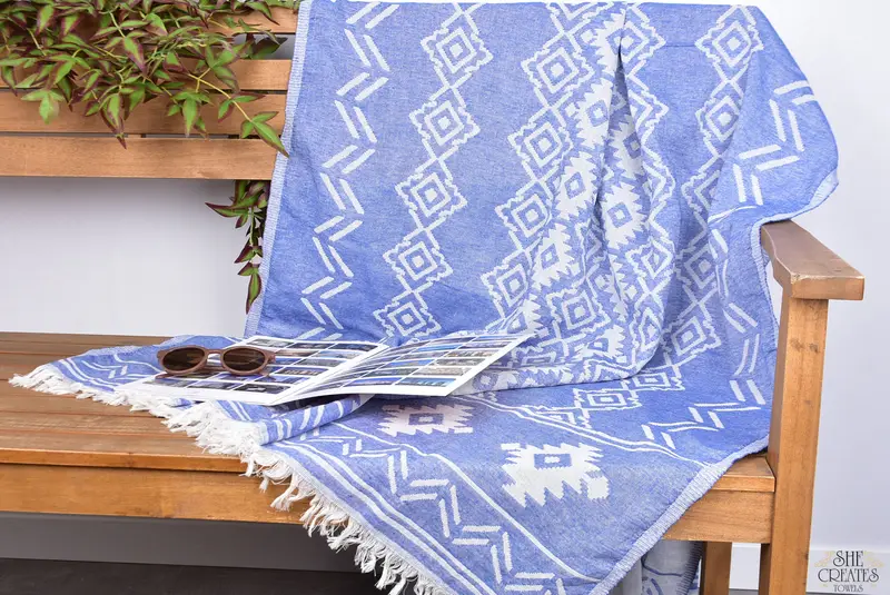 El Yapımı Hediyelik Türk Pamuk Geometrik Havlu Bej, 73x40 İnç