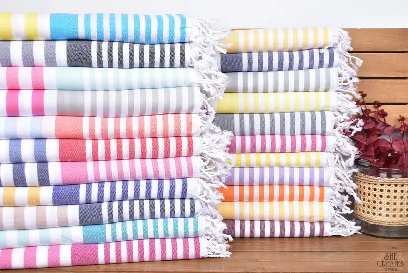Plaj ve Tropikal Çizgili Pamuk Havlu, Bekarlığa Veda Hediyesi, 36x67 İnç