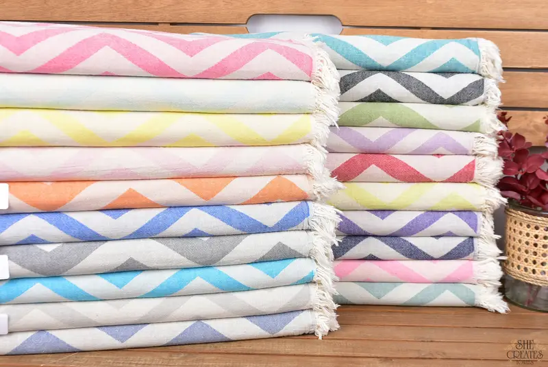 Plaj Havlusu Kişiye Özel Türk Pamuğu Zigzag Tasarım, 70x40 İnç
