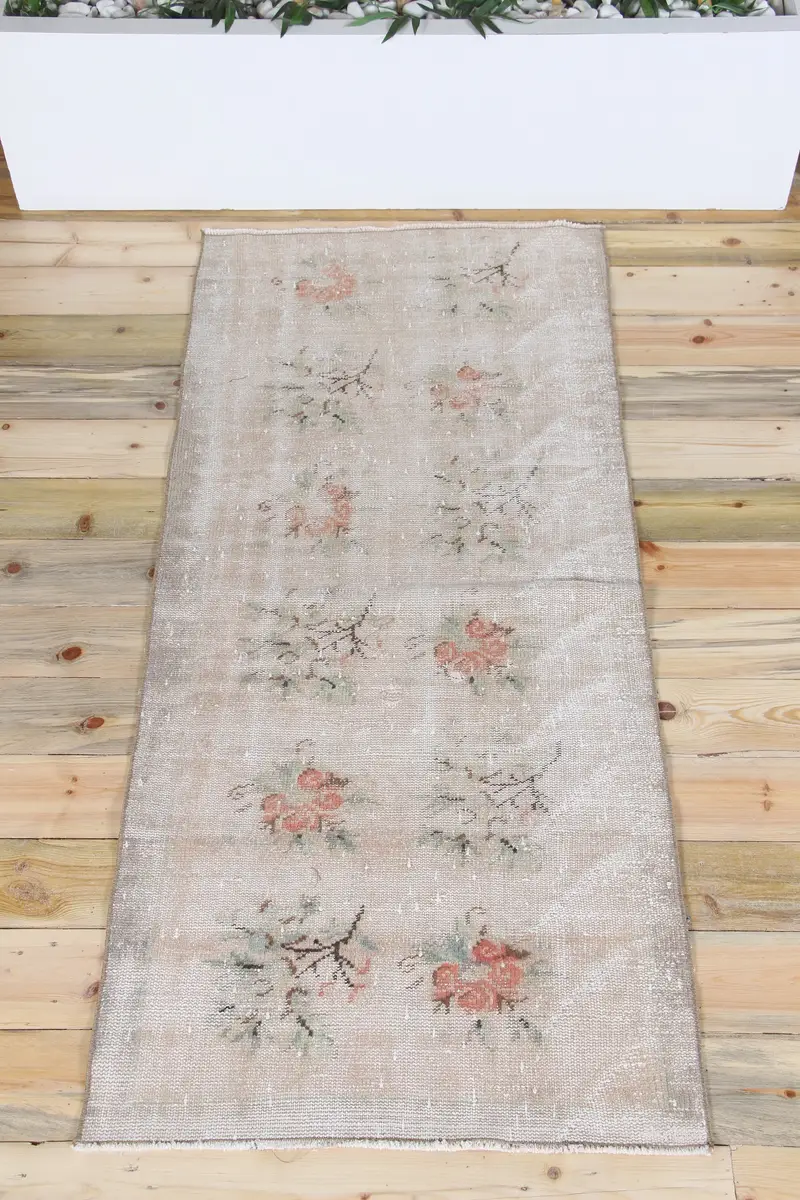 Vintage 2.6x6.1 ft Halı, Accent Türk Halısı, Kahverengi Gri Çiçekli Halı