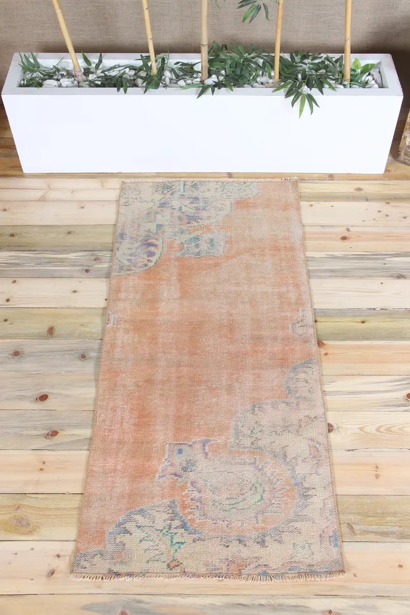 2.5x5.4 ft Türk Vintage Halı, Küçük Halı, Kilim Turuncu Yün Halı