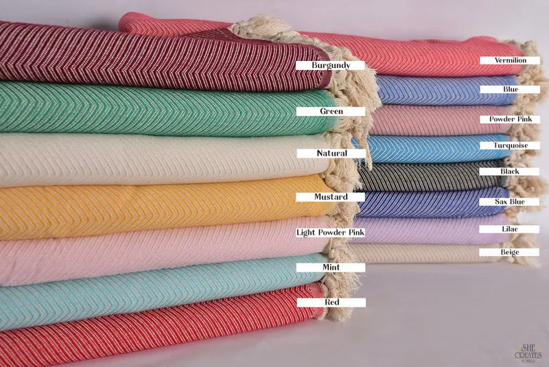67x83 Pamuk Şal, Dokuma Battaniye, Organik, Geri Dönüşümlü, İkat, Nakışlı