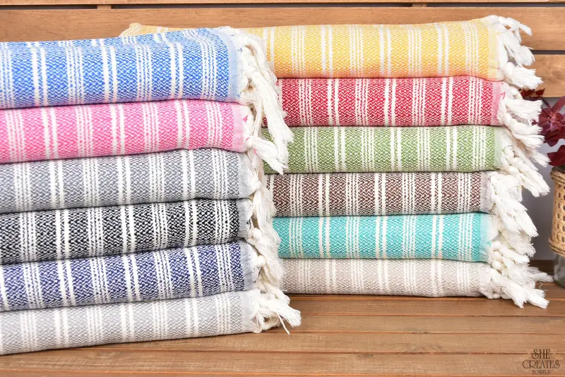 Düğün Hediyeleri Pamuk Çizgili Çay Havlusu, Bej, 18x32 İnç