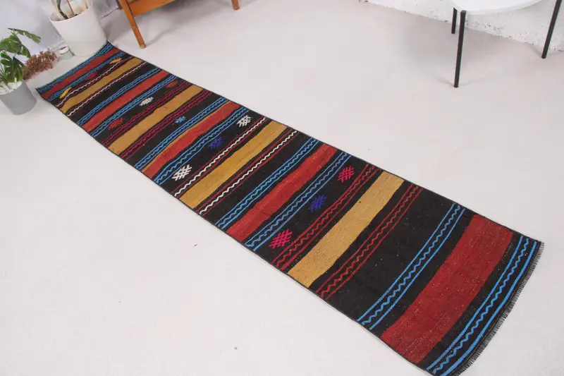 Türk Yolluk Halısı, 1.8x8.6 ft Vintage Halı, Kırmızı Kilim Yün Halı