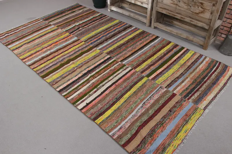 Vintage Türk Halısı, 4.7x8.5 ft Alan Halısı, Kahverengi Sarı Hayvan Baskı Halısı