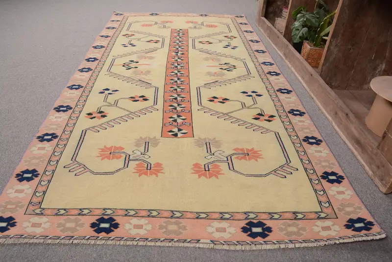 Vintage Türk Halısı, 3.6x7.2 ft Halı, Sarı Oryantal Yün Halı