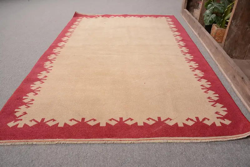 Vintage Türk Halısı 3.6x5.6 ft, Kırmızı Kareli Halı