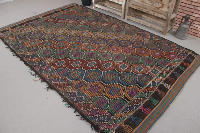 5.6x9.2 ft Büyük Türk Halısı, Mavi Güneybatı Vintage Halı
