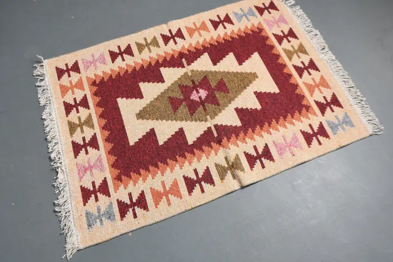 Vintage Küçük Halı, 2.8x3.9 ft Türk Halısı, Kırmızı Yün Halı