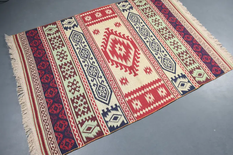 3.8x5.5 ft Türk Halısı, Vintage Vurgu Halısı, Kırmızı Mavi Hayvan Baskı Halısı