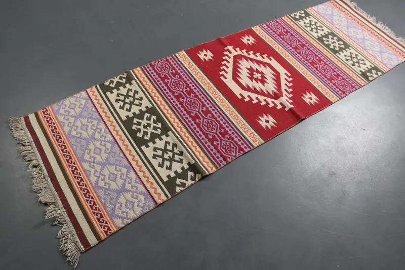 2.6x8.1 ft Vintage Halı, Türk Yolluk Halısı, Kırmızı Bej İkat Halı