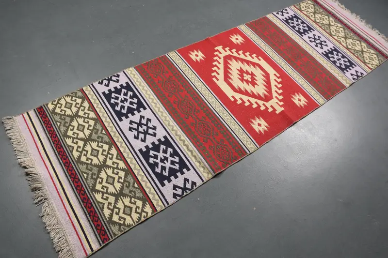 Vintage Türk Yolluk Halısı 2.6x8.1 ft, Kırmızı Düz Halı Yün