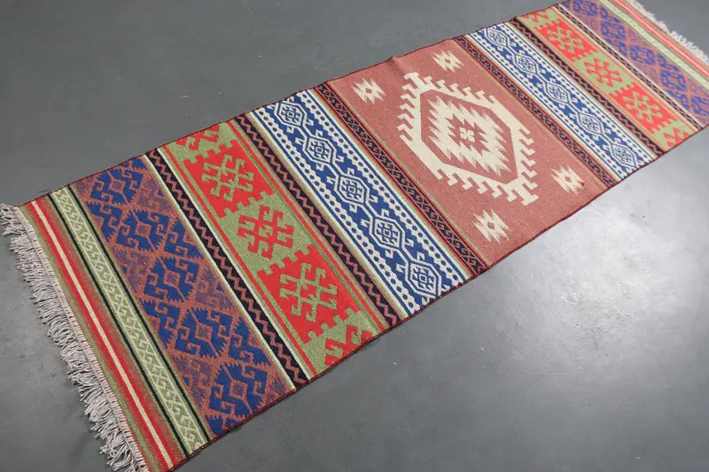 2.5x4.6 ft Türk Halısı, Kilim, Kırmızı Bitkiler ve ağaçlar Kilim Yünü