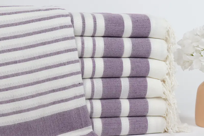 Türk Banyo Havlusu Lavanta Çizgili Boho Plaj Havlusu, 39x73 İnç