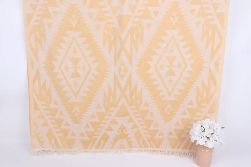 Kişiye Özel Türk Hamam Havlusu Hardal Geometrik, 40x75 İnç