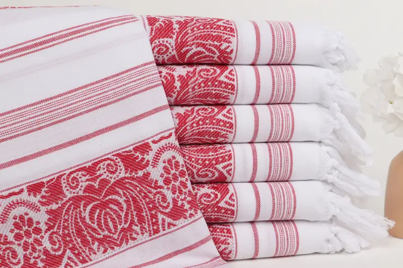 Scorpion Design Türk Banyo Havlusu Kırmızı Pamuk, 40x67 İnç