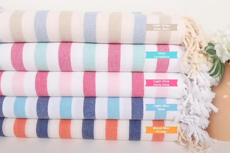 Kişiye Özel 40x71 İnç Organik Pamuk Banyo Havlusu, Bej Çizgili Havlu
