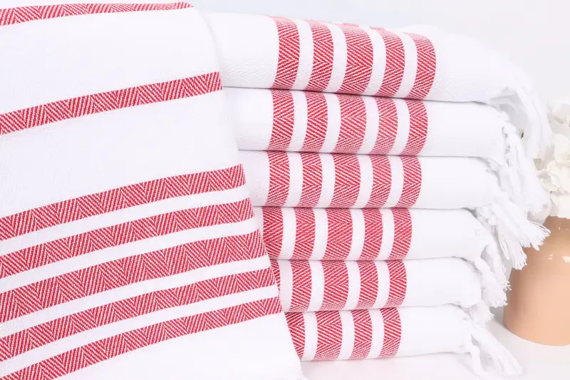 Monogram El Havlusu Kırmızı Pamuk Balıksırtı, 24x36 İnç