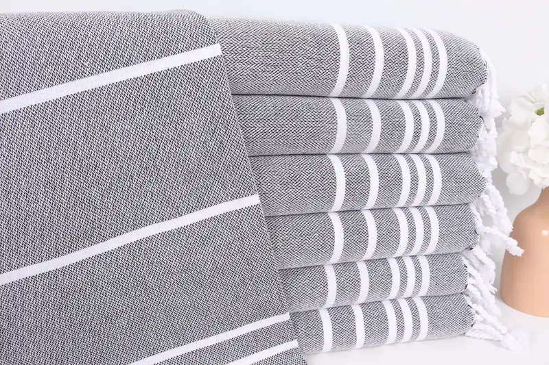 Siyah Pamuklu Bulaşık Havlusu Çizgili, 18x38 İnç