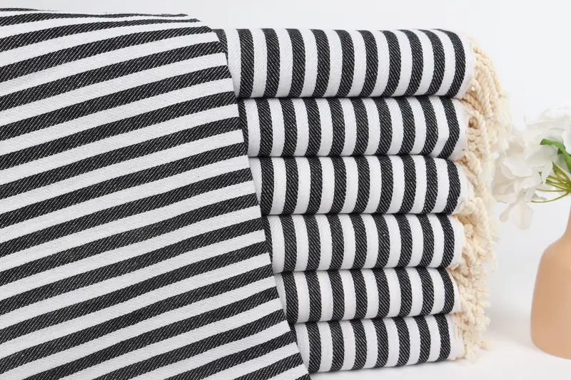 Çizgili Havlu Organik Pamuk Banyo Havlusu, Siyah Bej, 40x71 İnç