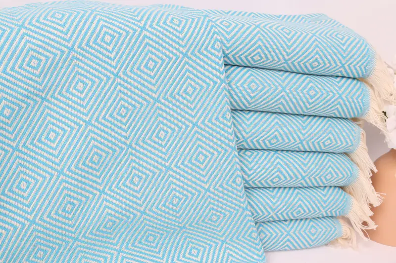 Kişiye Özel Elmas Çay Havlusu Turkuaz Pamuk, 20x28 İnç