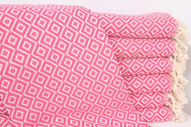 Kişiye Özel Fuşya Türk Plaj Havlusu, Baklava Desenli, 40x71 İnç