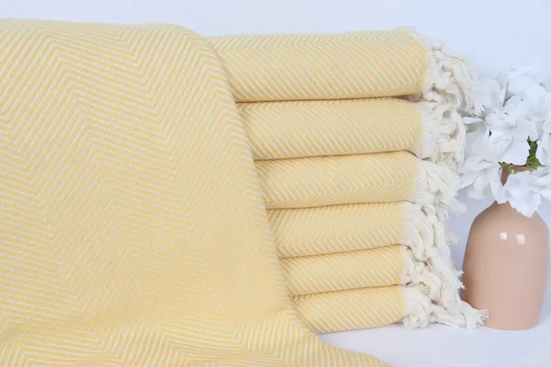 Türk Havlusu Plaj Banyosu, Sarı Pamuk, 40x71 İnç