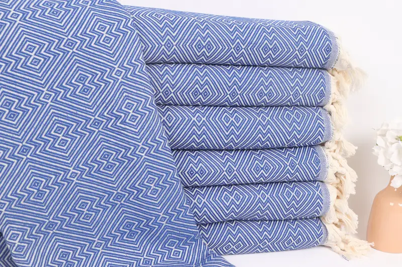 Kişiye Özel Sax Mavi Pamuklu Battaniye, 79x91 İnç