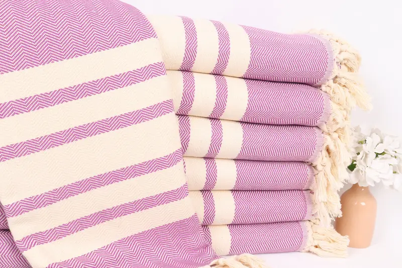 Dokuma Kişiye Özel Mor Pamuk Balıksırtı Battaniye, 79x95 İnç