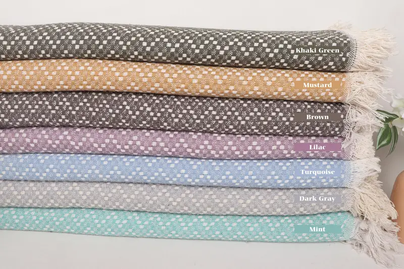 Balıksırtı Atma Pamuklu Battaniye Bej Ekose, 67x75 İnç