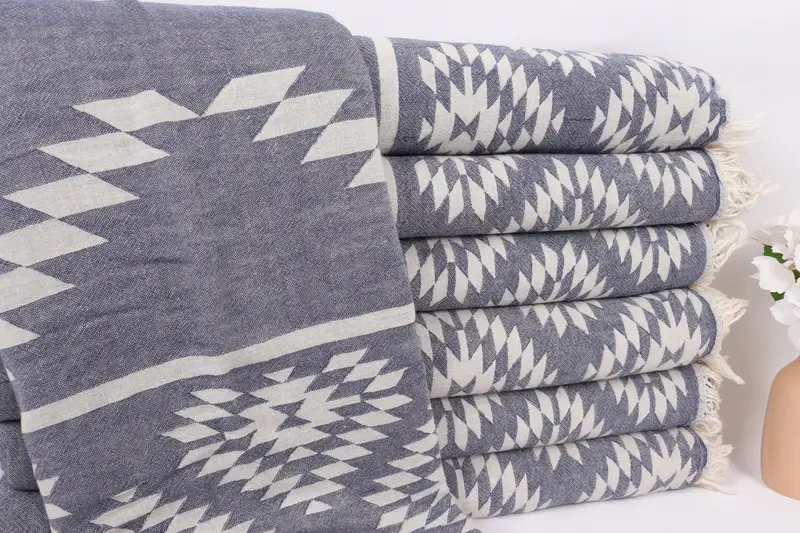 Kanepe Battaniyesi Lacivert Pamuk Atma Boho Paisley Desen, 56x83 İnç