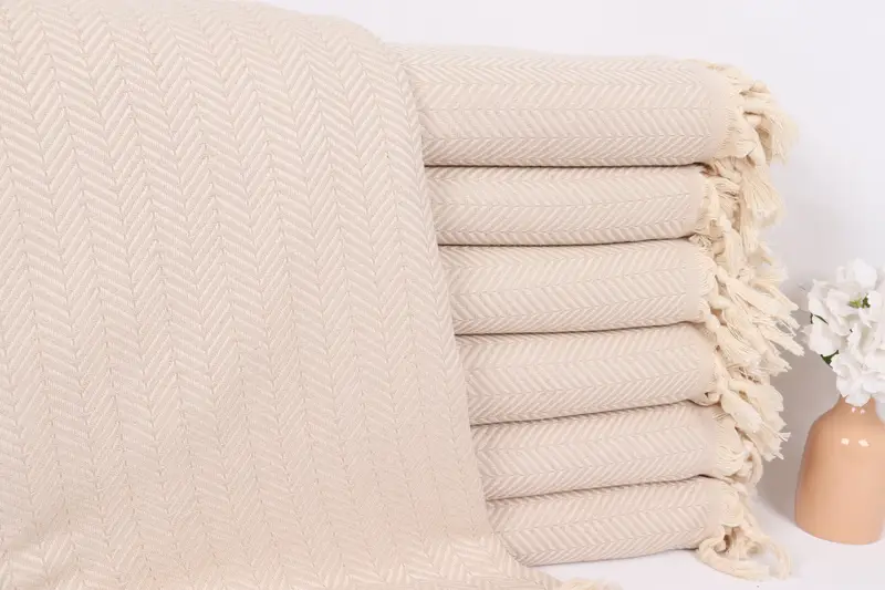Özel Bej Pamuklu Chevron Battaniye, Kişiye Özel Örtü, 75x91 İnç