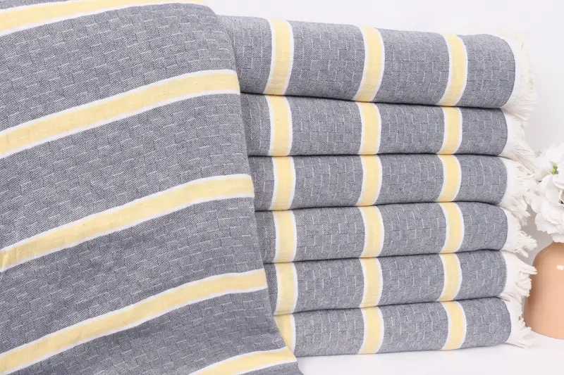 Yatak Örtüsü Çizgili Lacivert-Sarı Pamuklu Battaniye, 83x95 İnç