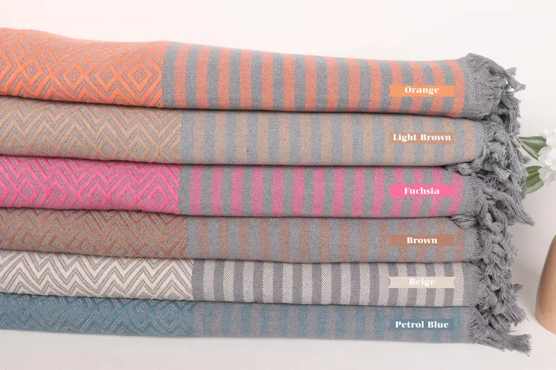 Monogram Battaniye 79x103 İnç Pamuk Atma Bej Chevron