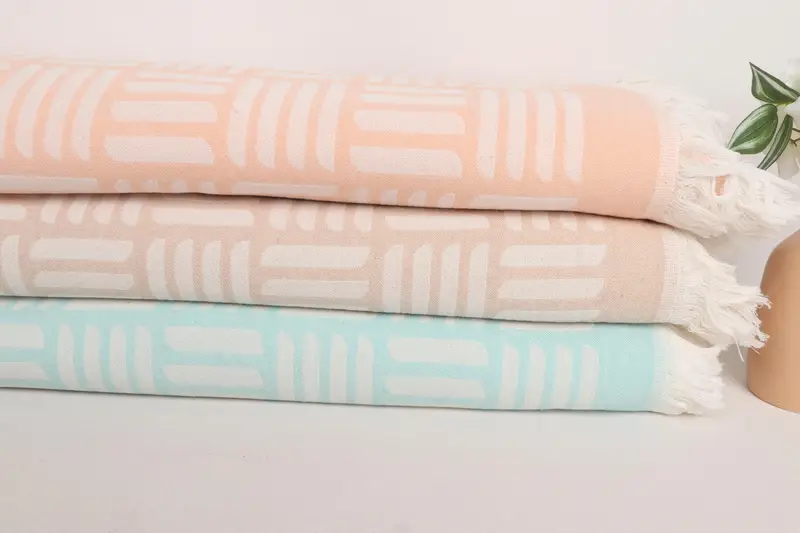 Battaniye Kanepe Pamuklu Geometrik Bej, 87x95 İnç