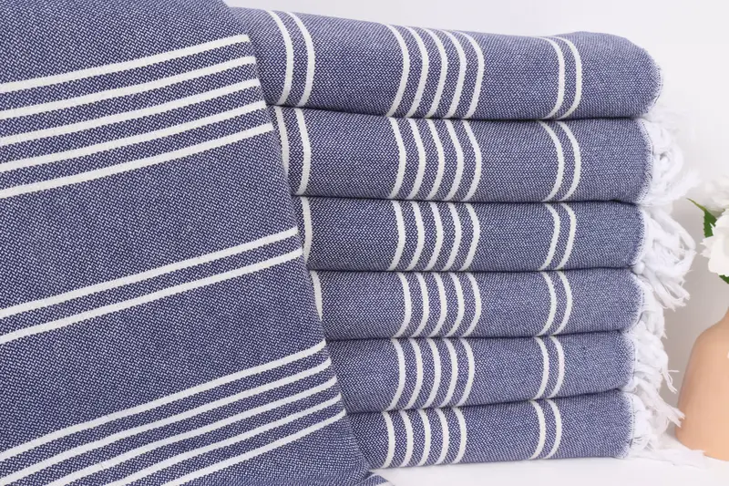 Bachelorette Lacivert Pamuk Çizgili Battaniye, 71x95 İnç