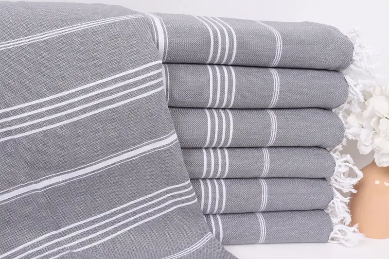 Battaniye Kanepe Koyu Gri Çizgili Pamuklu, 79x95 İnç
