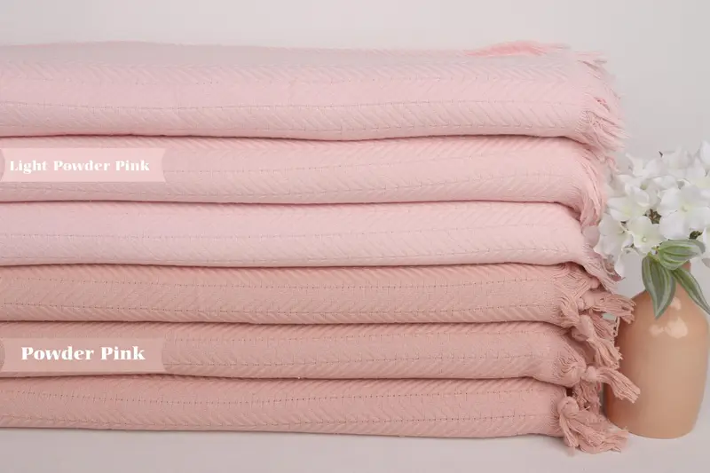 Stonewashed Chevron Battaniye, Pamuk, Bej, 56x75 İnç