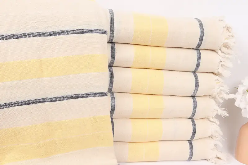 Çizgili Lacivert-Sarı Pamuklu Örtü, Kişiye Özel Battaniye, 79x99 İnç