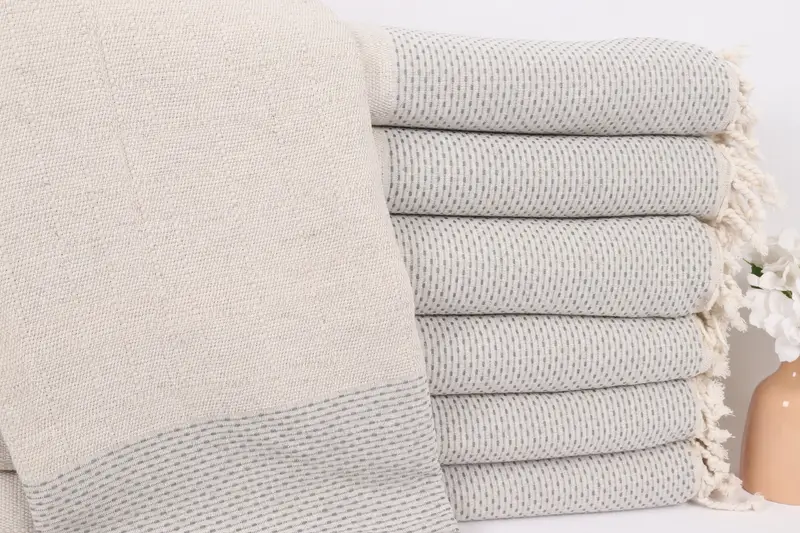 Özel Puantiyeli Koyu Gri Pamuklu Battaniye, 95x95 İnç
