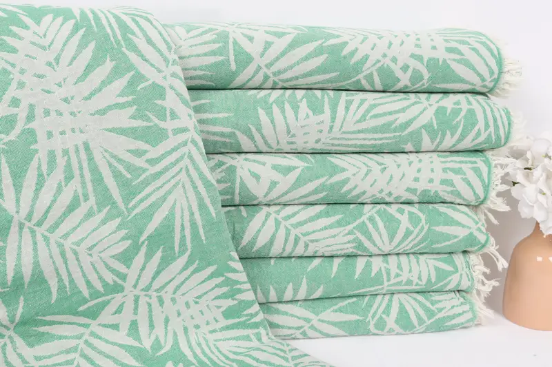 Yeşil Pamuklu Çiçek Desenli Örtü, 79x99 İnç