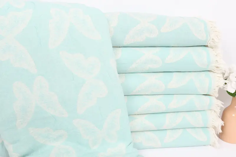 Battaniye Kanepe Nane Pamuk Kelebek Desenli, 79x95 İnç