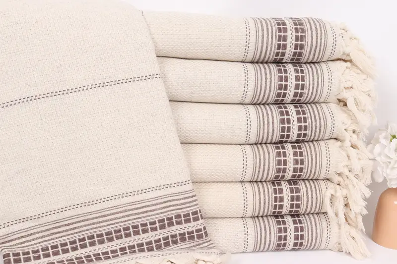 Battaniye Kanepe Özel Çizgili Bej Keten, 93x95 İnç