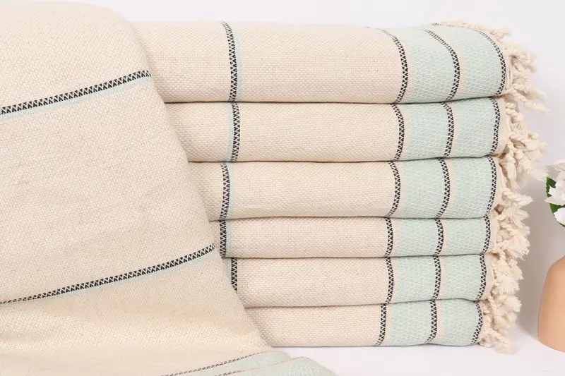 Mint Keten Şal 95x103 İnç, Özel Hediye, Yatak Örtüsü, Türk Battaniyesi