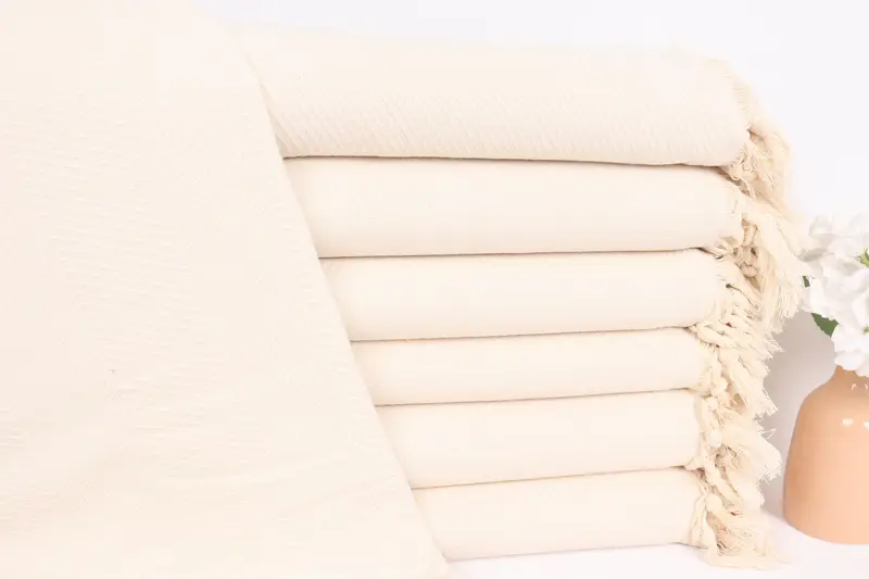 Zig Zag Battaniye Özel Düğün Hediyesi Doğal Pamuk Bej, 67x83 İnç